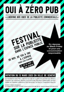 Lancement de la campagne en faveur de l’initiative « Genève Zéro Pub » Les associations à l’origine de l’initiative (ROC : Réseau Objection de Croissance ; GLIP…