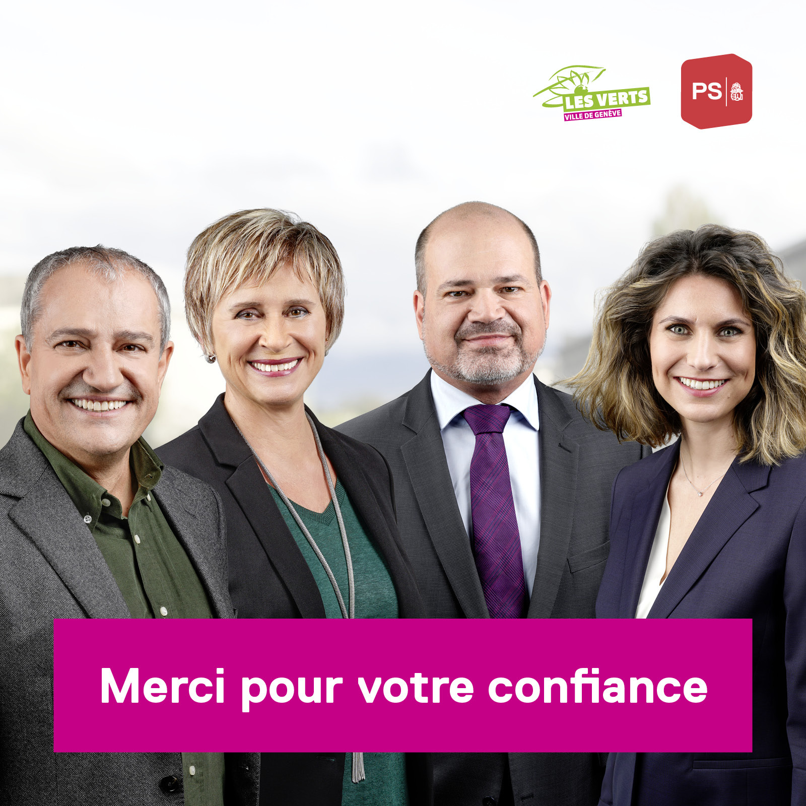 Après une campagne du second tour sobre et principalement digitale, les résultats du 7 avril 2020 confirment l’excellent score de la liste Verte-Socialiste au premier tour. En effet, la liste de l’Alliance a recueilli la majorité des voix pour l’élection de Sami Kanaan, Christina Kitsos, Frédérique Perler et Alfonso Gomez aux postes de Conseiller·e·s administratif·ve·s de la Ville de Genève. Porteuse de projets innovants pour la Ville avec des mesures prioritaires en matière de justice sociale, d’égalité et de lutte contre les changements climatiques, les Socialistes et les Vert·e·s sont prêt.e.s à relever les défis qui s’annoncent.